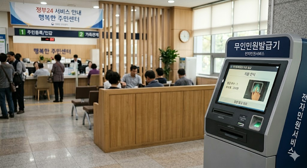 인터넷 사용이 어렵다면 무인민원발급기를 이용할 수도 있습니다. 무인발급기는 다음 장소에서 쉽게 찾을 수 있습니다. 주민센터 지하철역 대형마트 시청 및 구청 공공기 발급 방법